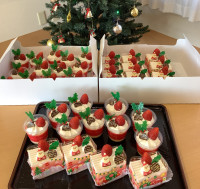 当日は、クリスマスケーキやプリンなどの